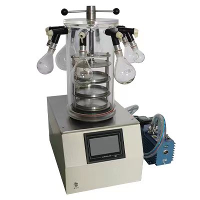 臺式凍干機(1臺)、真空泵(1臺)2XZ-2/2XZ-4可選、玻璃罩(1個,含壓蓋裝置)、不銹鋼樣品架(1個)、不銹鋼樣品盤(3個)、真空連接管(1根)、橡膠閥(8個)、凍干瓶(8支)、茄形瓶規格:100ml、250ml、500ml、1000ml(可選)